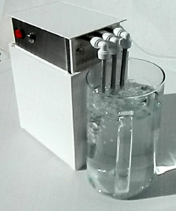"DOTTO" è dotato di pompa ciclica interna abilitata ad una funzione ripetitiva della durata di 300 secondi per ogni 1,5 litri di acqua che è, sia caricata che restituita alla brocca, in modalità ciclica per il tempo gestito dal programmatore elettronico. Attraversa ripetitivamente il filtro a cuscino con carboni attivi e diffonde simultaneamente la quantità di Ozono nell'acqua.